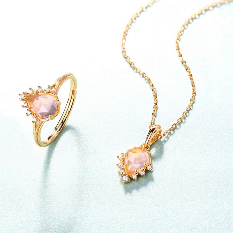 14K Gold Plated S925 Sterling Silver, Untreated Rose Quartz, Zircon |