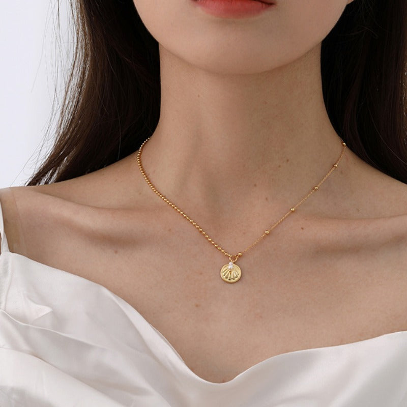 The clamshell beaded necklace is a beautiful addition to your jewelry collection. The perfect dainty necklace with a gold pendant. Can be stacked with other SOCALI necklaces to elevate your look. Wear this necklace to the beach, pool, or day at the park. SOCALI sweatproof jewelry is perfect for spring and summer.