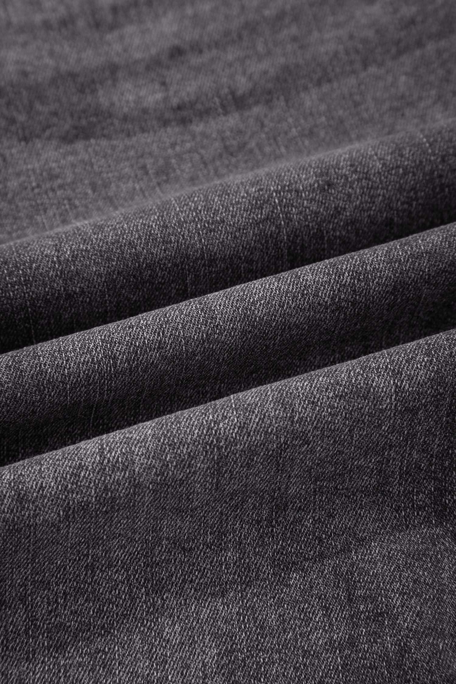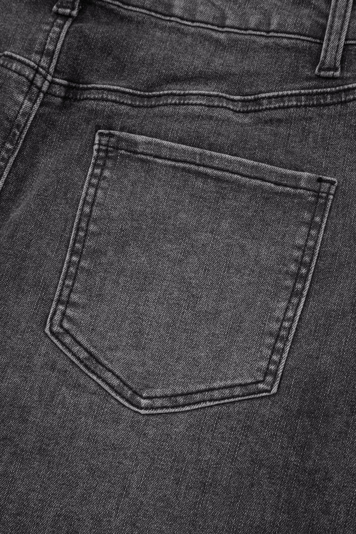 Dark Grey Irregular Distressed Bottom Denim Midi Skirt