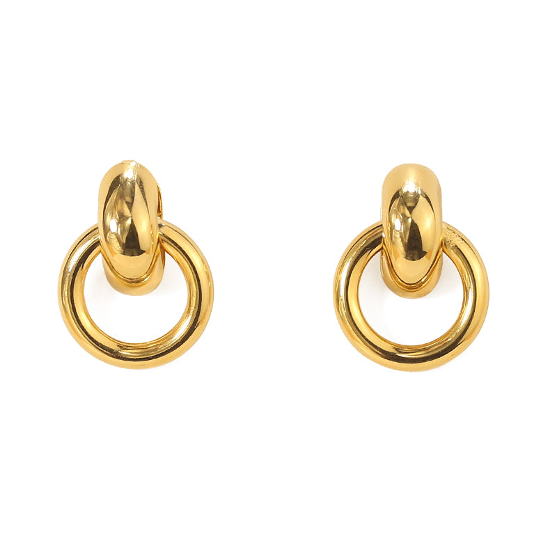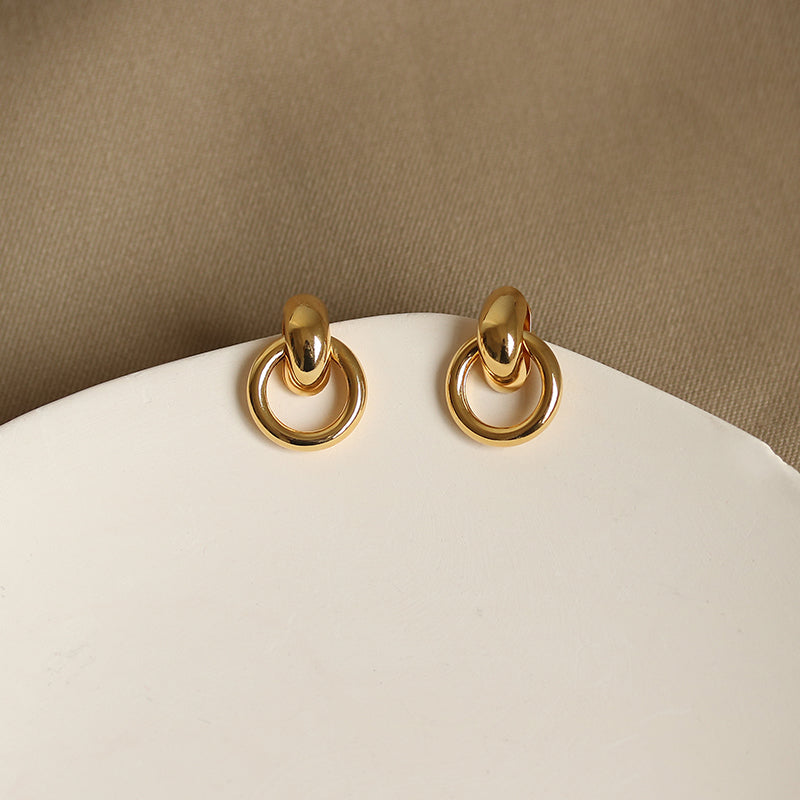 Crafted with 18K gold-plated recycled brass, the Laurena Double Ring Earrings combine sustainability with contemporary style. These earrings feature a double ring design, creating an eye-catching dangle effect that adds movement and elegance to your look. The Double Ring Earrings are a versatile accessory that can be worn for various occasions, from casual outings to special events.