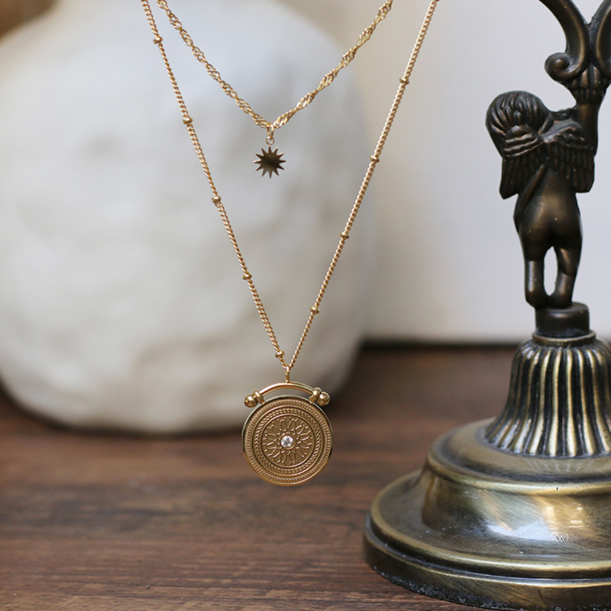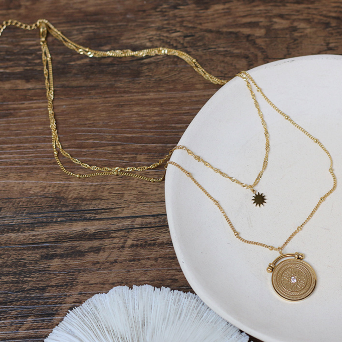 SPIRITUAL DOUBLE LAYER 18K GOLD NECKLACE