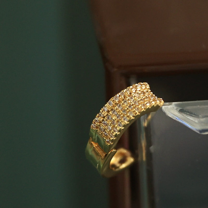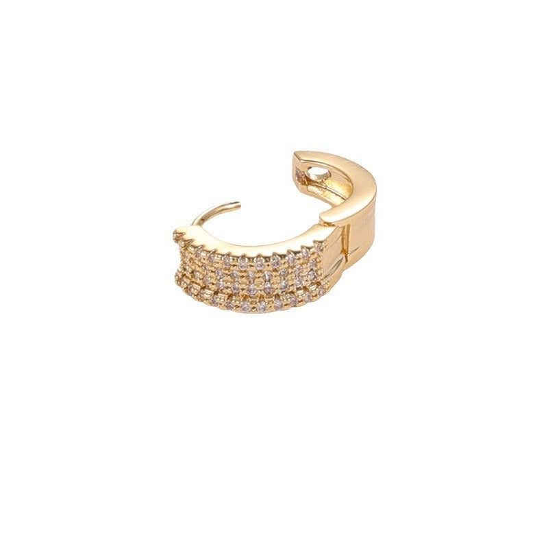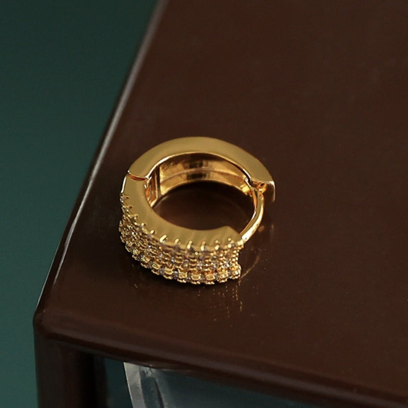 The elegant mini hoop earrings are the perfect addition to your jewelry collection. A thick band design with zircon detailing throughout. Clasp closure for a classy look. Dazzle in the sunlight or glow under the moonlight in these earrings. Pair with other SOCALI jewelry to complete the look.