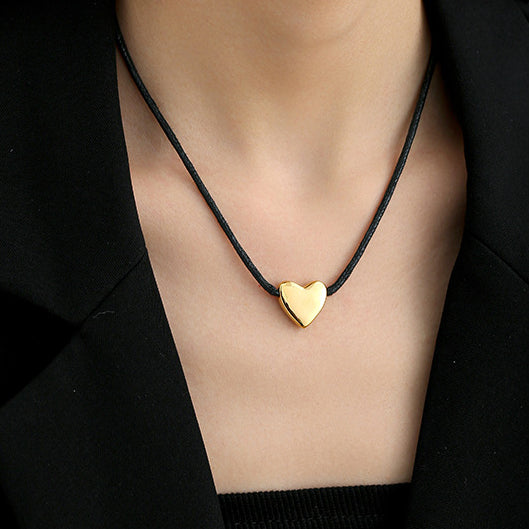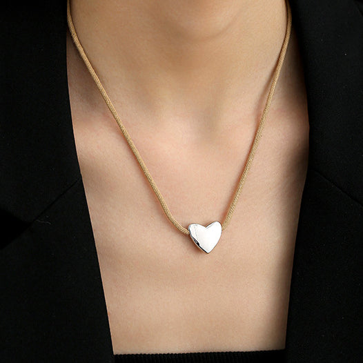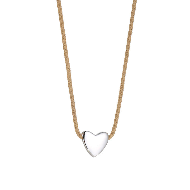 This heart charm rope necklace comes in two different styles. Either a black rope with a gold charm or a tan rope with a silver charm. Choose your style to match with your personal preference. This necklace is simple but gives off a boho/ urban vibe. Great for any outfit.
