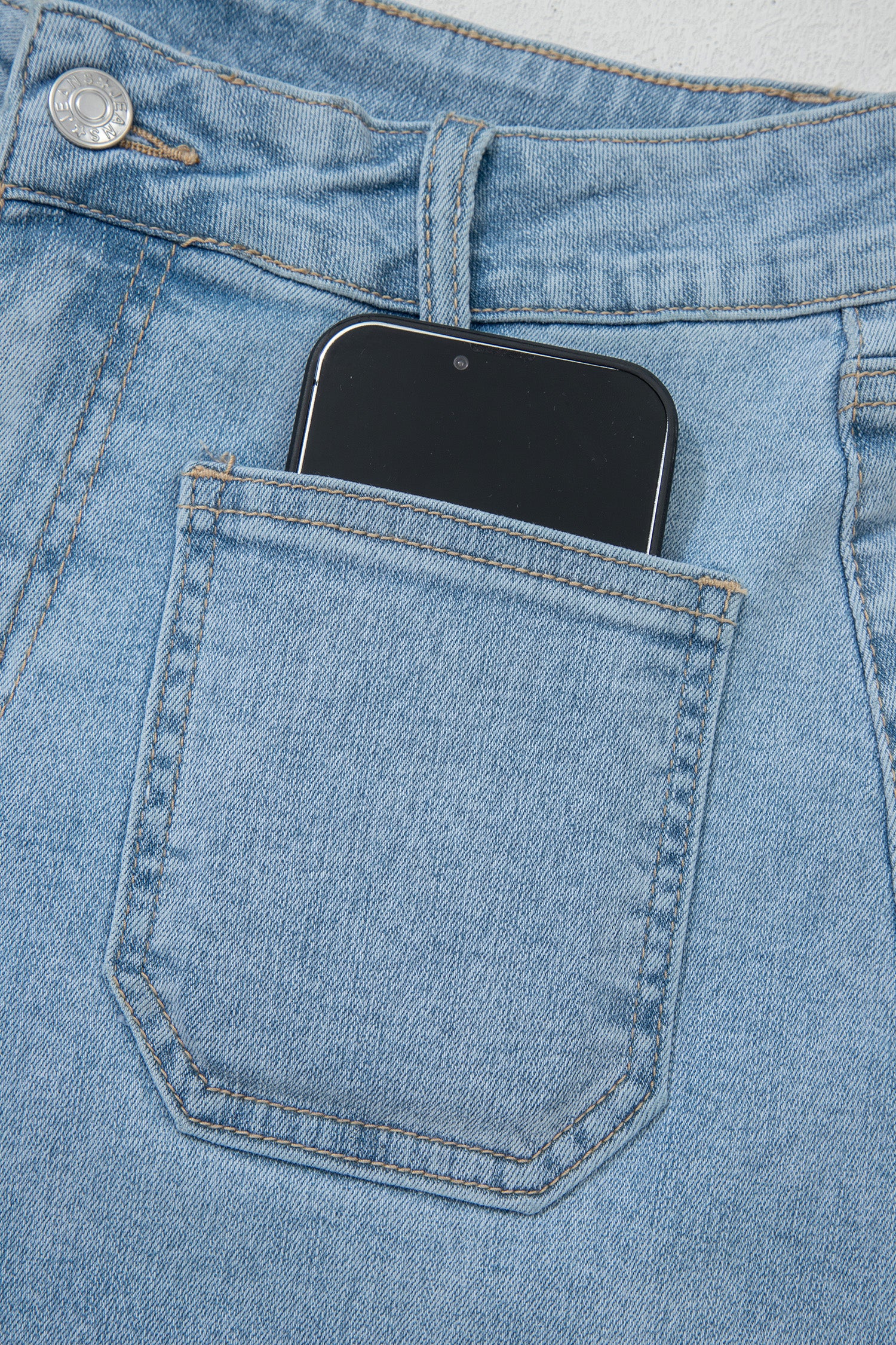 Durable denim fabric offers comfortable wear for daily casual outfits.
