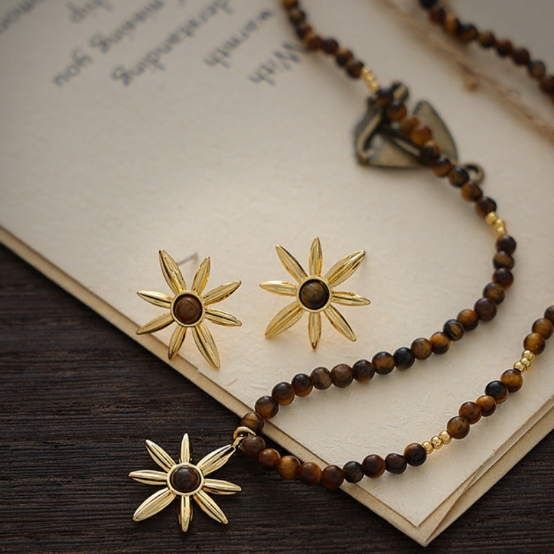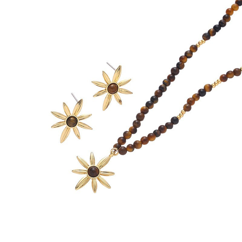 The aspen boho necklace and earring set is the perfect addition to your jewelry collection. With wooden beads all around and a flower pendant, it's the perfect boho touch to any outfit. Matching floral earrings. Wear these to a music festival, concert, or to a day at the beach. Pieces sold separately.