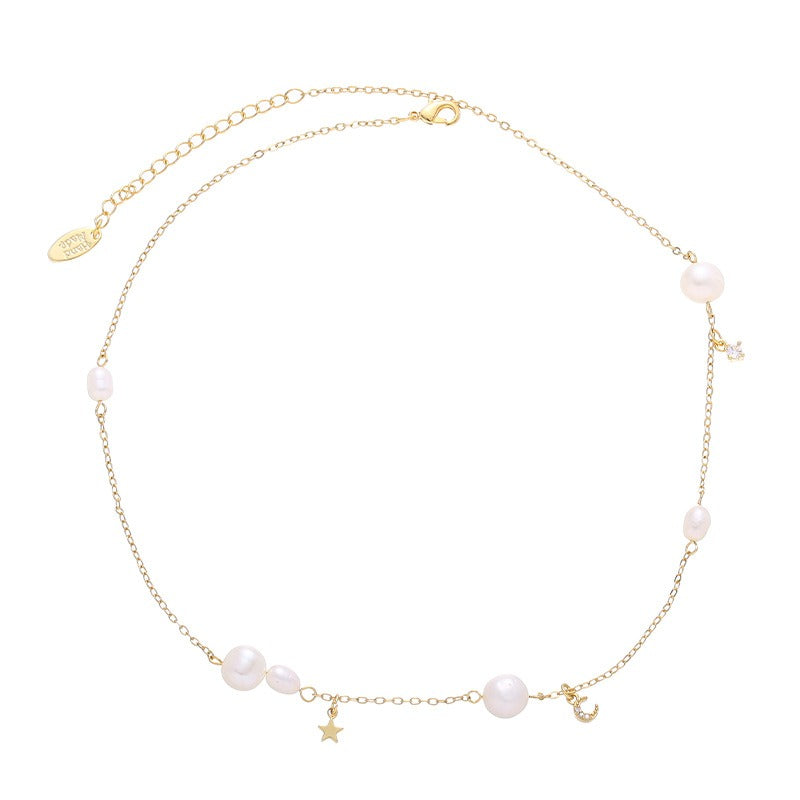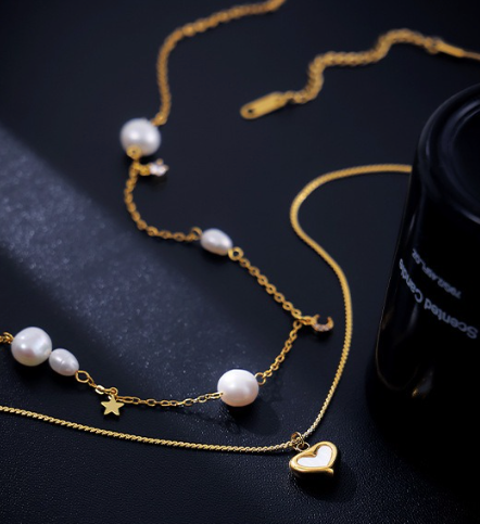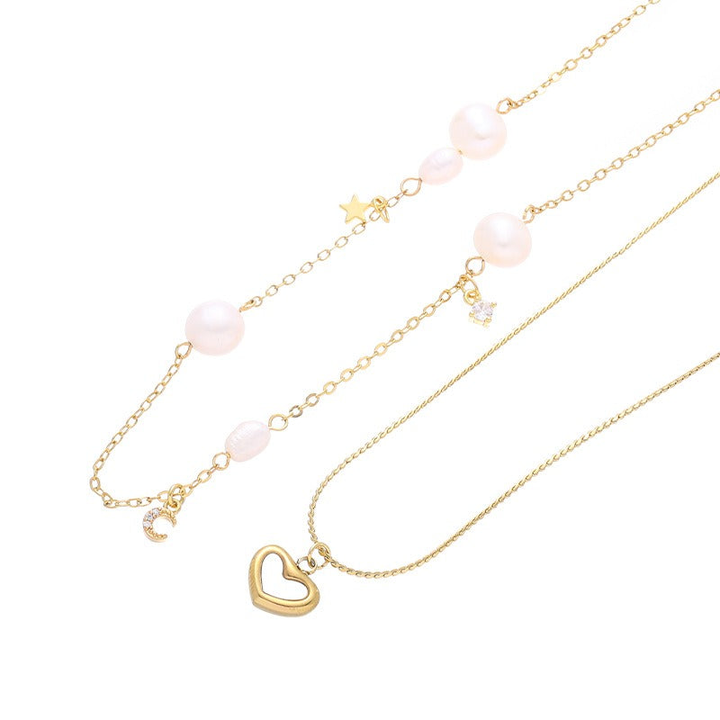 Celestial Pearl Dainty Necklace and Heart Charm Necklace
