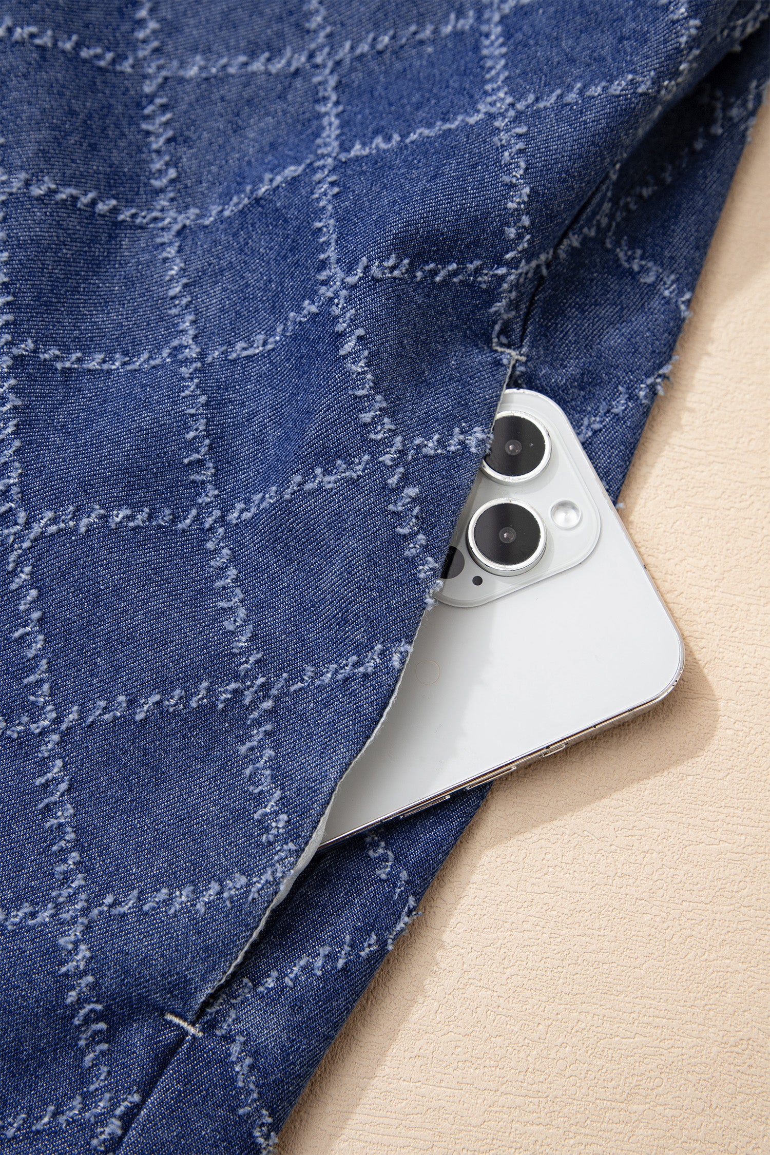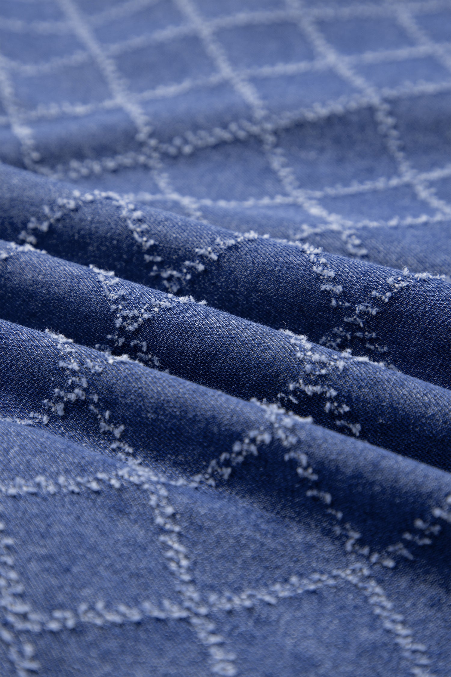 Textured fabric design adds unique touch to this denim dress.