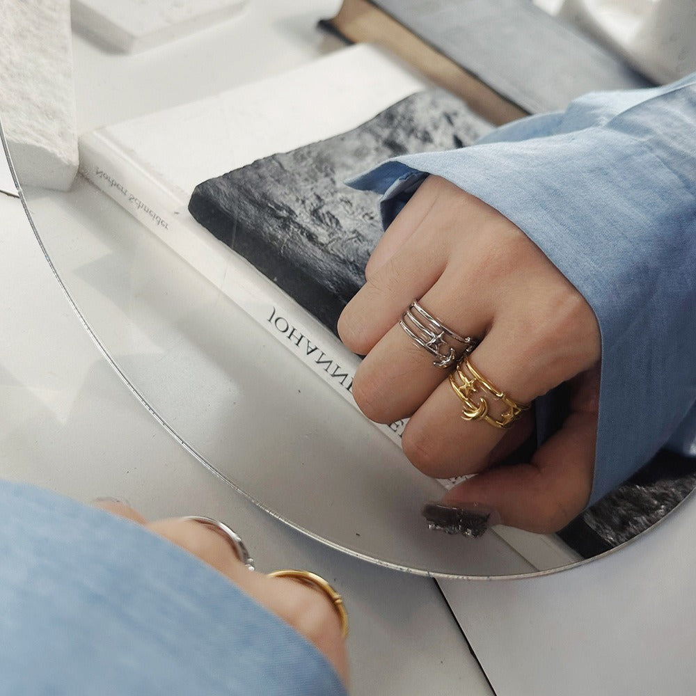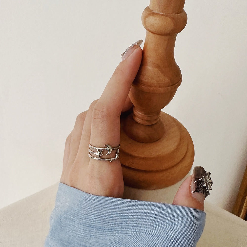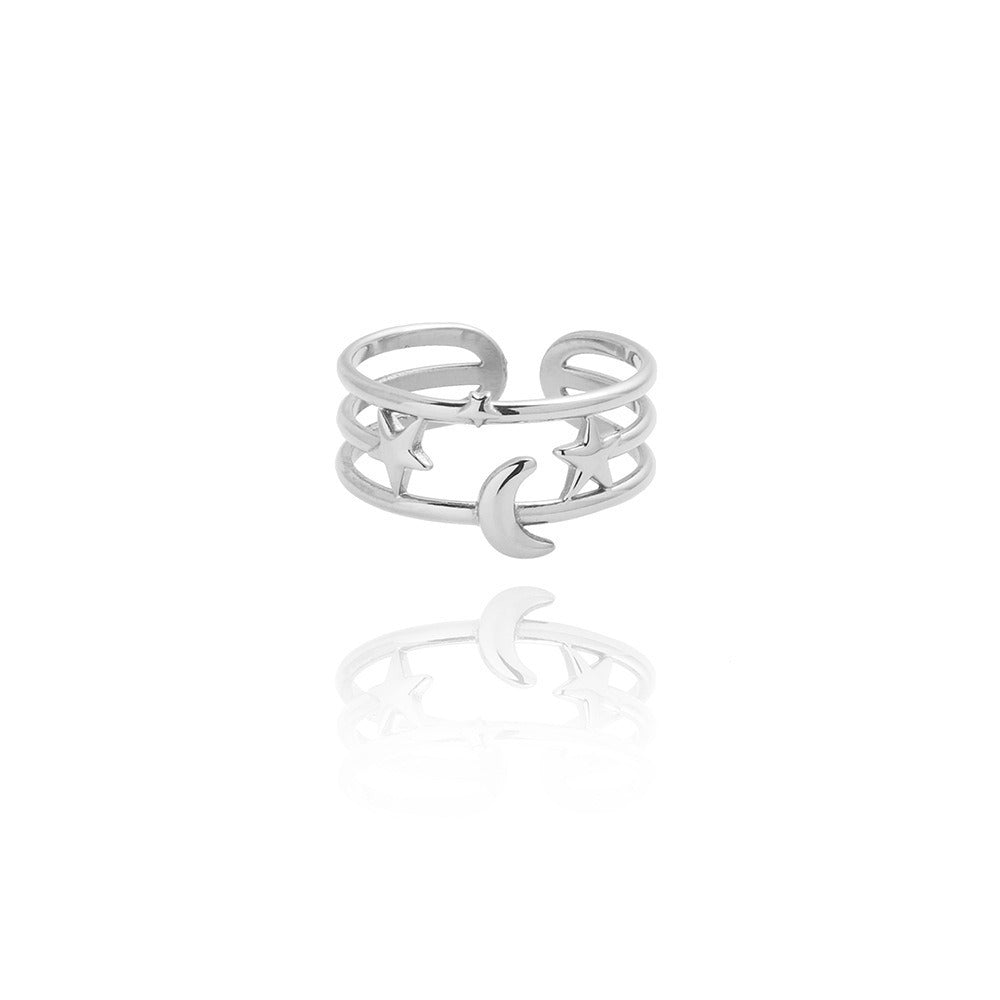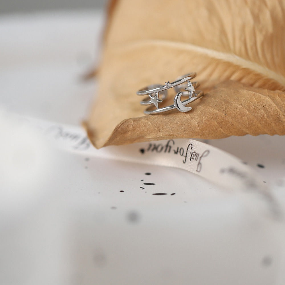 The starry night ring is beautiful addition to your jewelry collection. A three layer design with two stars and one moon. Comes in gold and silver to match your desired aesthetic. Pair with other SOCALI jewelry to complete the look. Perfect for your everyday wardrobe or a night out.
