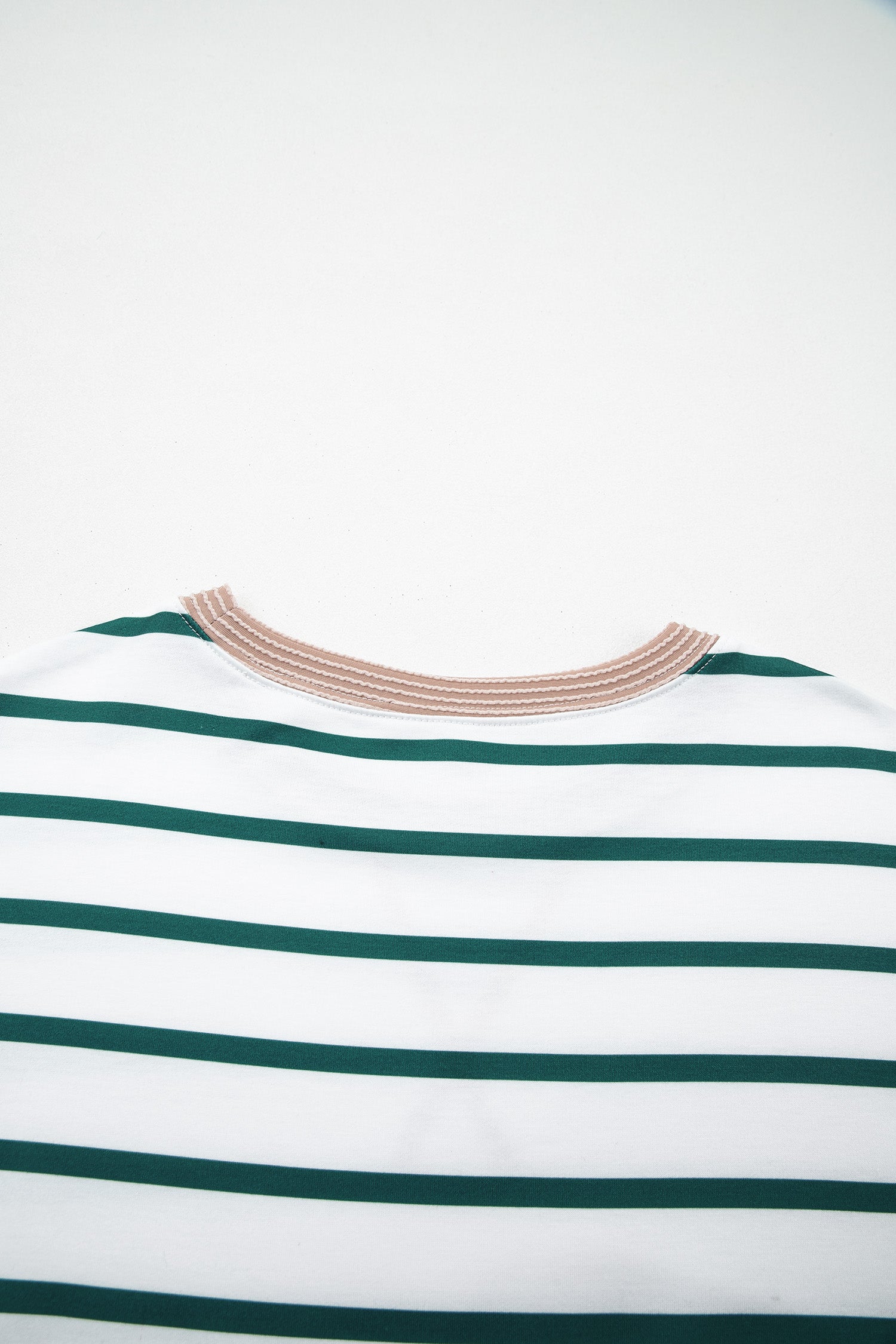 White Stripe Twisted Ribbed Patchwork Drop Shoulder Round Neck Sweatshirt