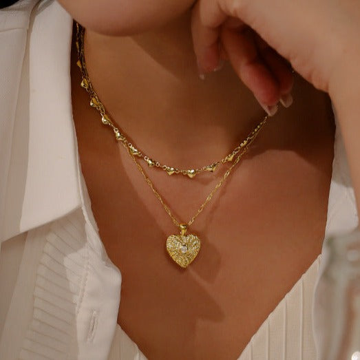 Zircon Inlaid Heart Necklace Collection