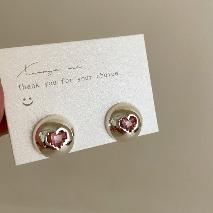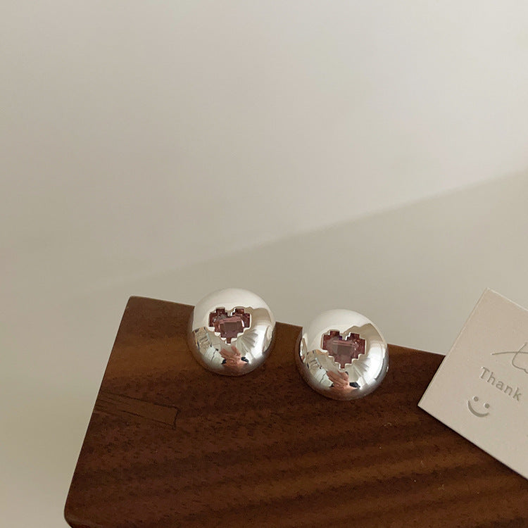 The digital glitch heart earrings are the cutest addition to your outfit. Stainless Steel Studs with zircon pink hearts in the center.